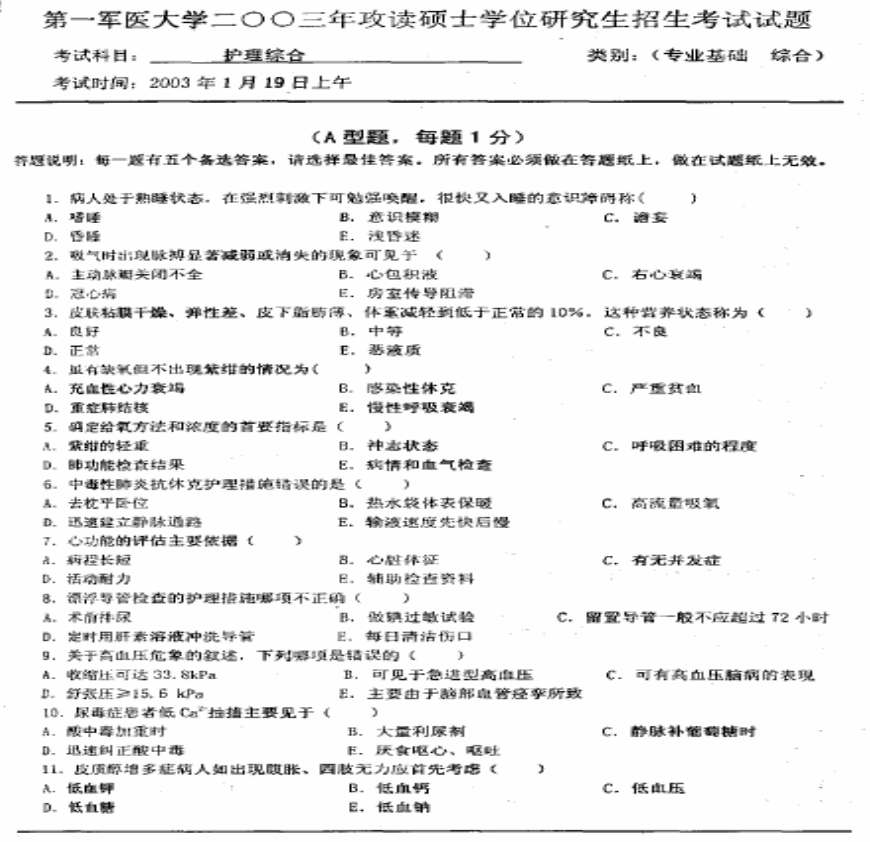 南方医科 考研真题 护理综合 2010.pdf 免费下载