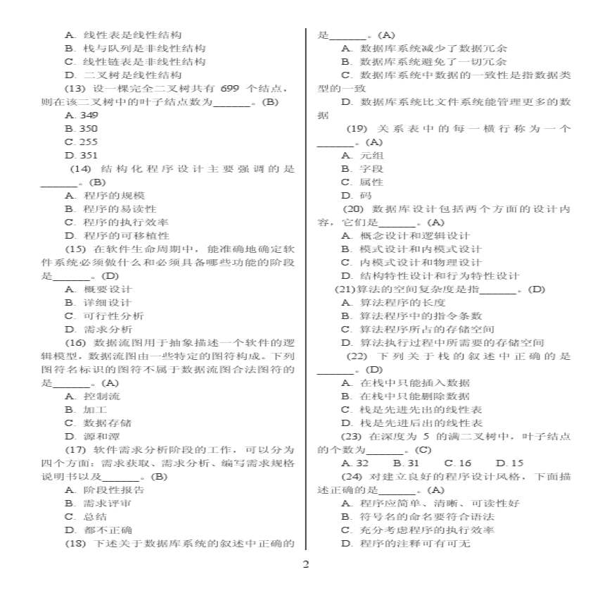 全国计算机二级考试公共基础知识题库及答案.pdf 免费下载