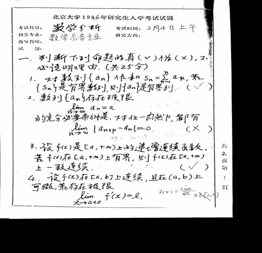 > qh历年数学分析考研试题