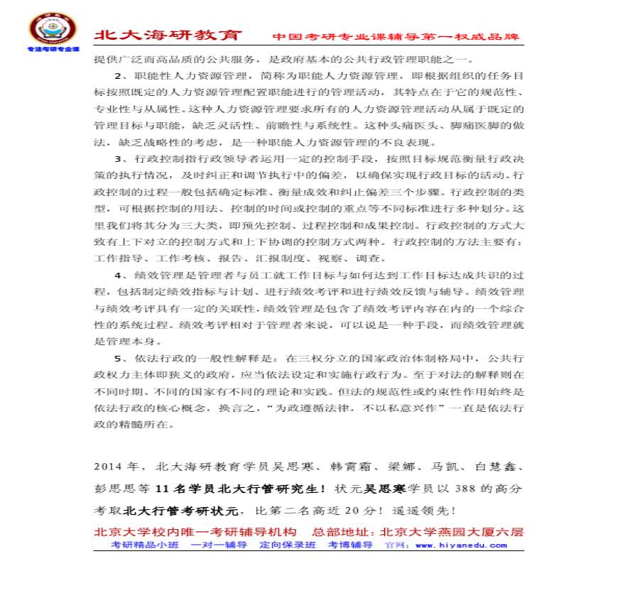 > qh行政管理考研真题解析-海研教育