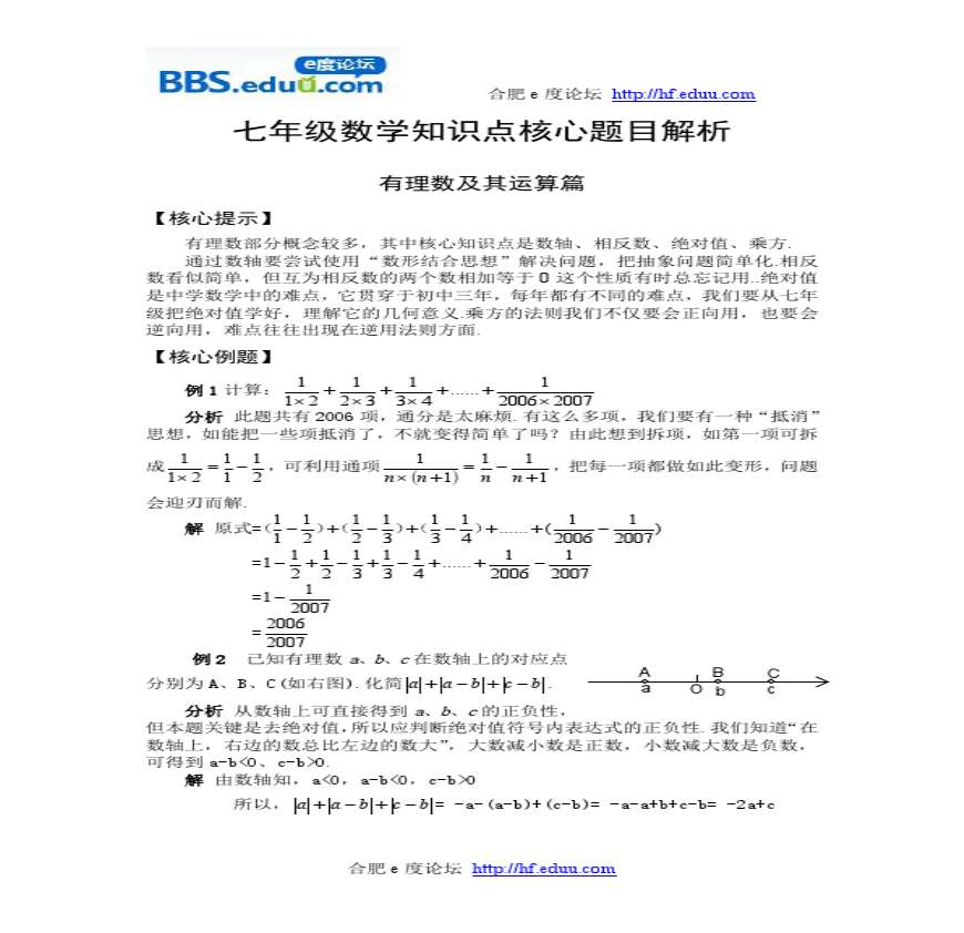 七年级数学知识点核心题目解析资料下载,喜欢的朋友可以下载收藏!