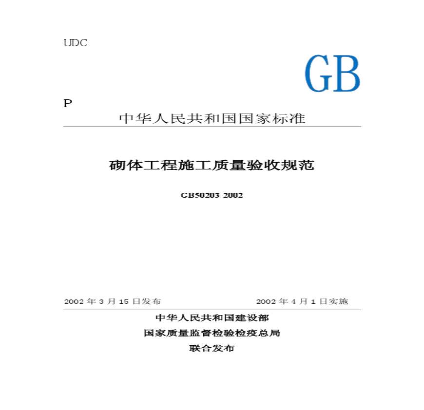 砌体工程施工质量验收规范(GB50203-2002)资料下载,喜欢的朋友可以下载收藏!