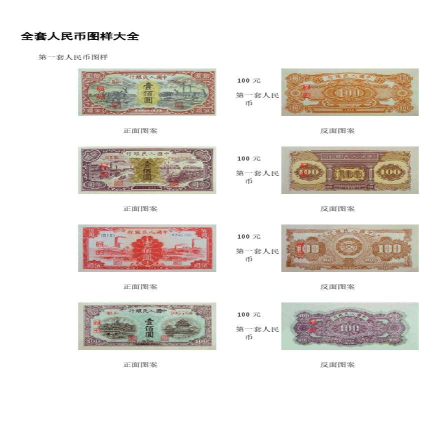 多多文库 学习资料页 第一套人民币图样 元 第一 正面图案 反面图案 元 第一套人民币 正面图案 反面图案 元 第一套人民币 正面图案 反面图案