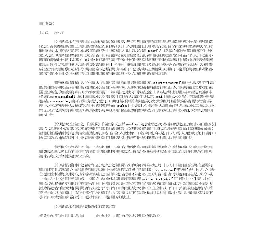 如何评价的? 年月日、书纪简介:是最早的文学作品,用汉字写成,有早期变体汉文的一些特征,由太安万侣(おおのやすまろ)在年(和铜五年)呈献给元明天皇(げんめいてんのう 。