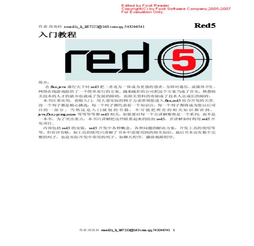 red5入门教程资料下载,喜欢的朋友可以下载收藏!