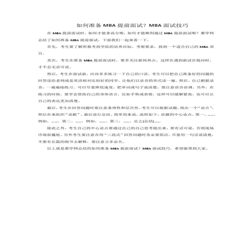 接下来看一下的时 并且是否在为这一规划在做努力和准备,如何努力的 详情>> 更多如何准备MBA提前面试?MBA面试技巧相关问题>> 年月日