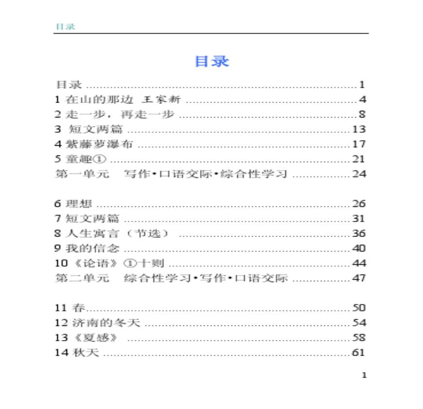 > 人教版 七年级语文教材上