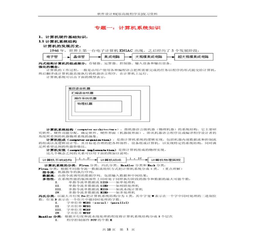 格式:全部DOCPDFPPT质量分 共页:硬件:结构 的发展历史:年,世界上第一台电了ENIAC出现,Zr;经历了 个发展阶段:冯式结构的组成部分:存储器运算器控制器输入设备和输出设备。