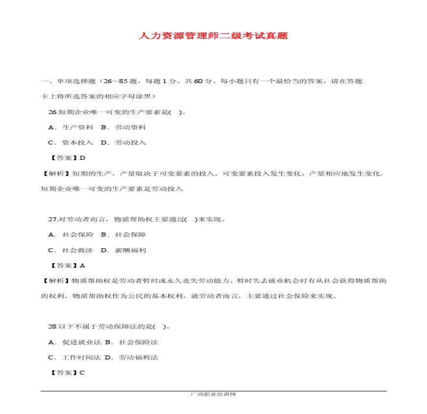 人力资源师二级考试真题详解资料下载,喜欢的朋友可以下载收藏!