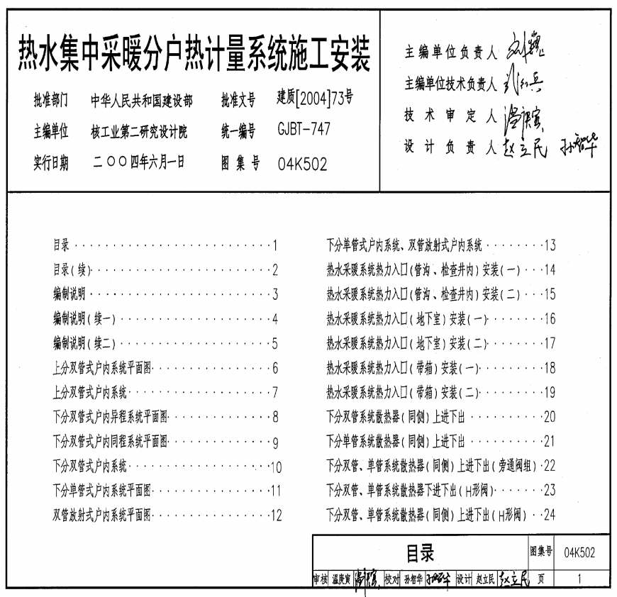 > 《热水集中采暖分户热计量系统施工安装》04K502