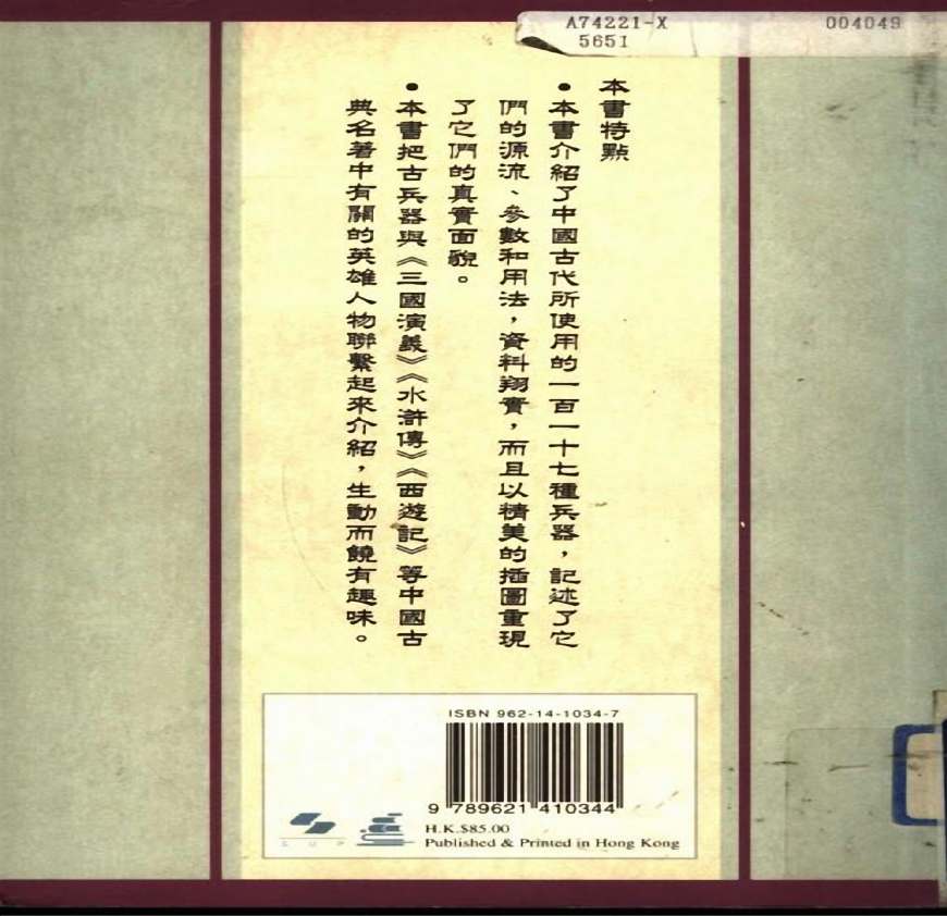 发贴时间:年月日 评分: 书中以“斩”、“打”、“紮”、“射”、“城”、“火”、“暗”、“甲”八个类别对古代兵器进行描述。