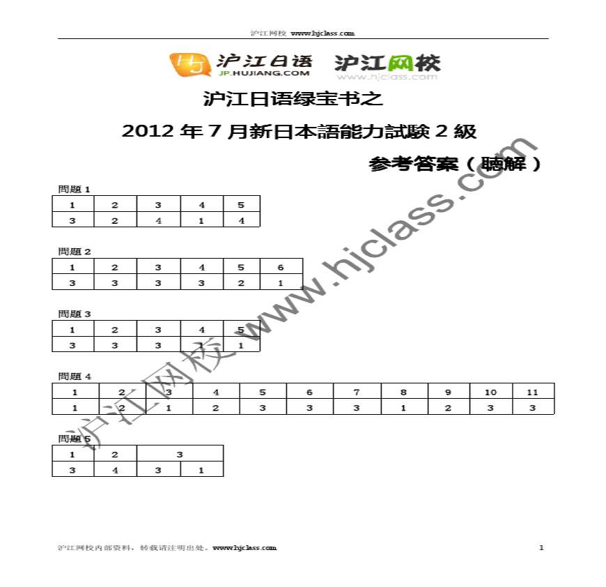 日语JLPT2012年7月N2听解答案资料下载,喜欢的朋友可以下载收藏!