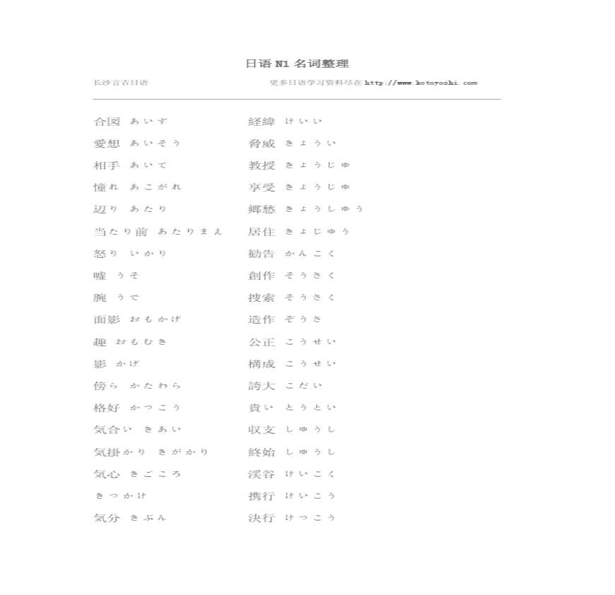 日语N1名词整理资料下载,喜欢的朋友可以下载收藏!