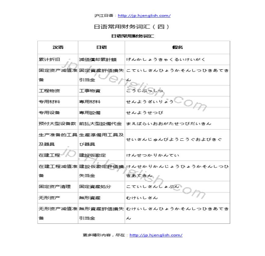 提供文档下载,摘要:汉语累计折旧日语減価償却累計額假名げんかしょうきゃくるいけいがく固定资产减值准沪江::更多精彩内容尽在::日语常 简介:本文档为《 学习资料页 中日对照带假名(个)管理会計(かんりかいけい)