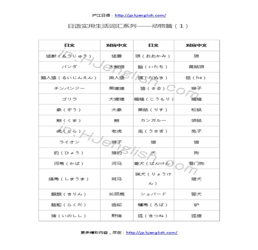 ¡ª¡ª ѧϰ×ÊÁÏÒ³ () ÈÕÓïʵÓÃÉú»î´Ê»ãϵÁж¯ÎïÆª()