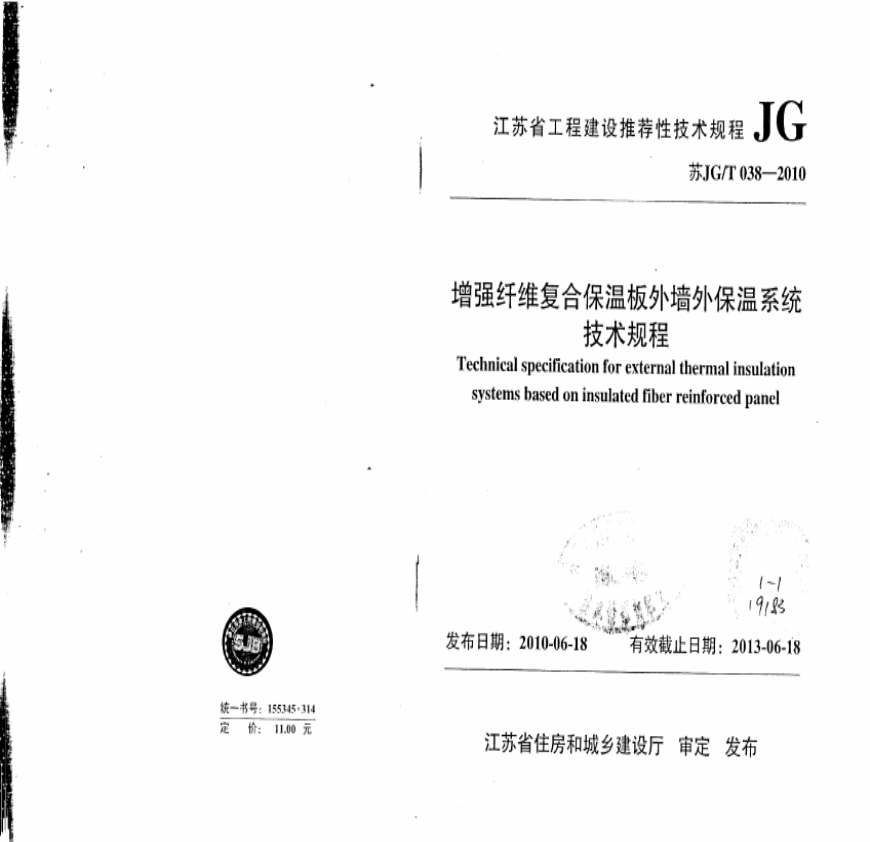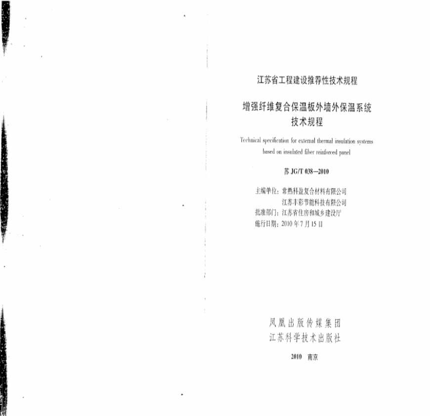 苏JGT 038-2010 增强纤维复合保温板外墙外保温系统技术规程资料下载,喜欢的朋友可以下载收藏!