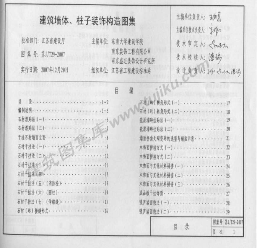 苏J/T29-2007 建筑墙体、柱子装饰构造图集.pdf 免费下载