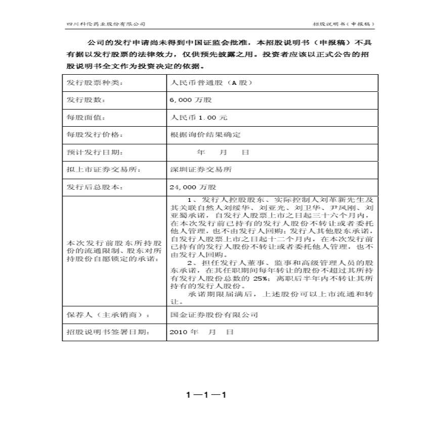 四川科伦药业股份有限公司招股说明书.pdf 免费下载