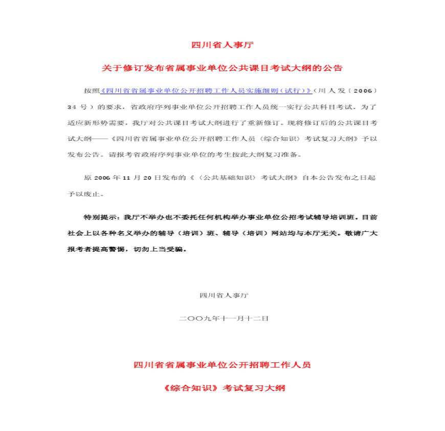 四川省事业单位 综合知识 考试复习大纲.pdf 免费下载