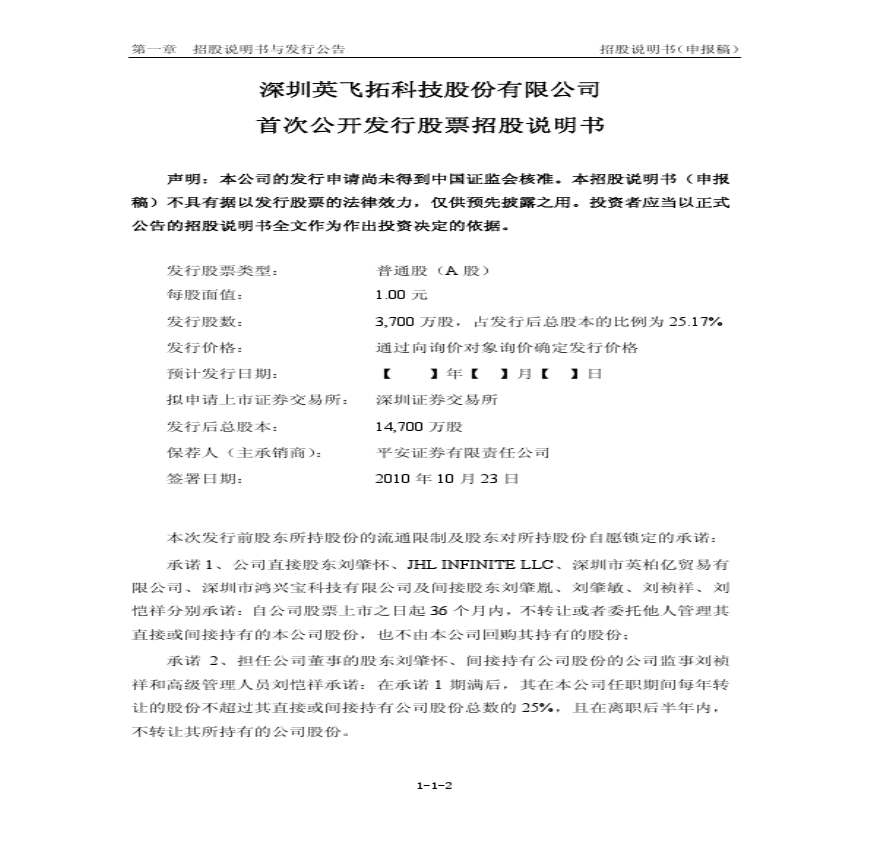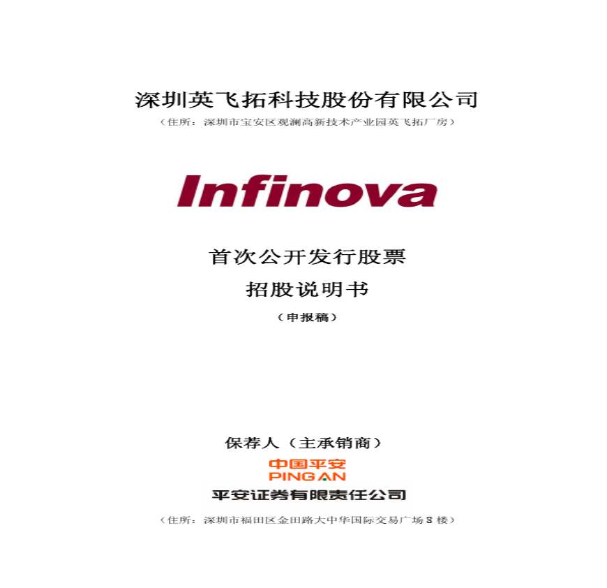 深圳英飞拓科技股份有限公司首发招股说明书.pdf 免费下载