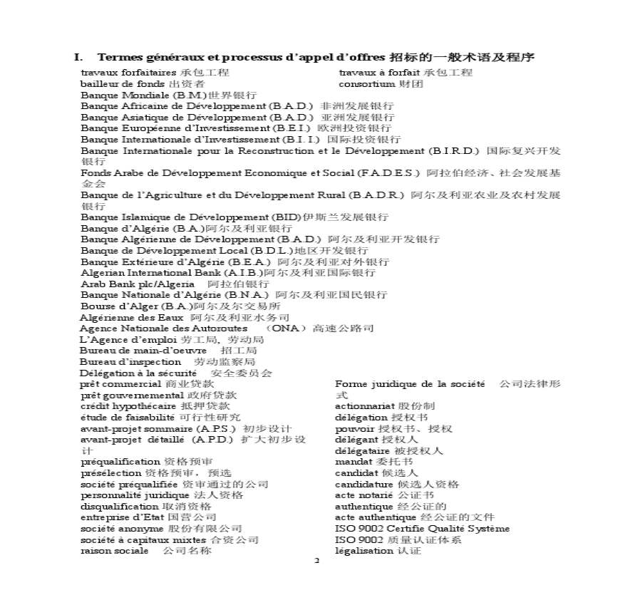 > 水电承包工程法语专业词汇