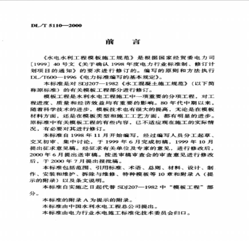 是根据国家经贸委电力司[]号文《关于确认 编写的原则和方法执行 学习资料页 备案号中华人民共和国电力行业标准水电水利工程模板施工规范发布实施中华人民共和国国家经济贸易委员会发布中华人民共和国电力行业标准水电水利工程模板施工规范 (—)下载_文档下载