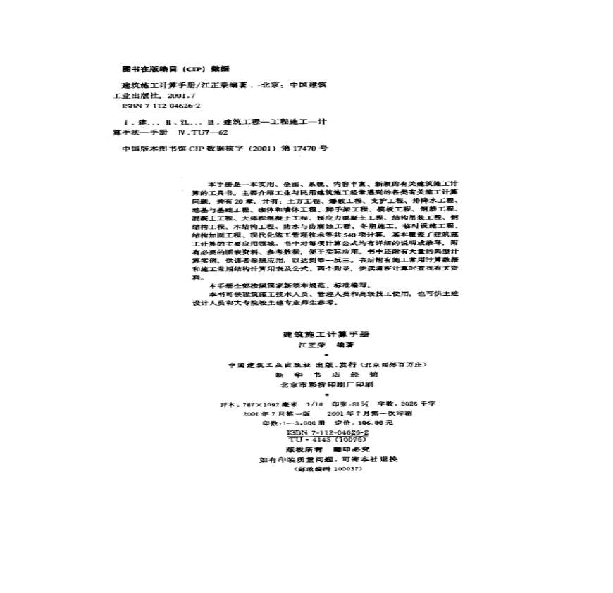 建筑(第四版)原创力文档 学习资料页 图书在版编目(CIP'数据建筑江正荣编著 工程计
