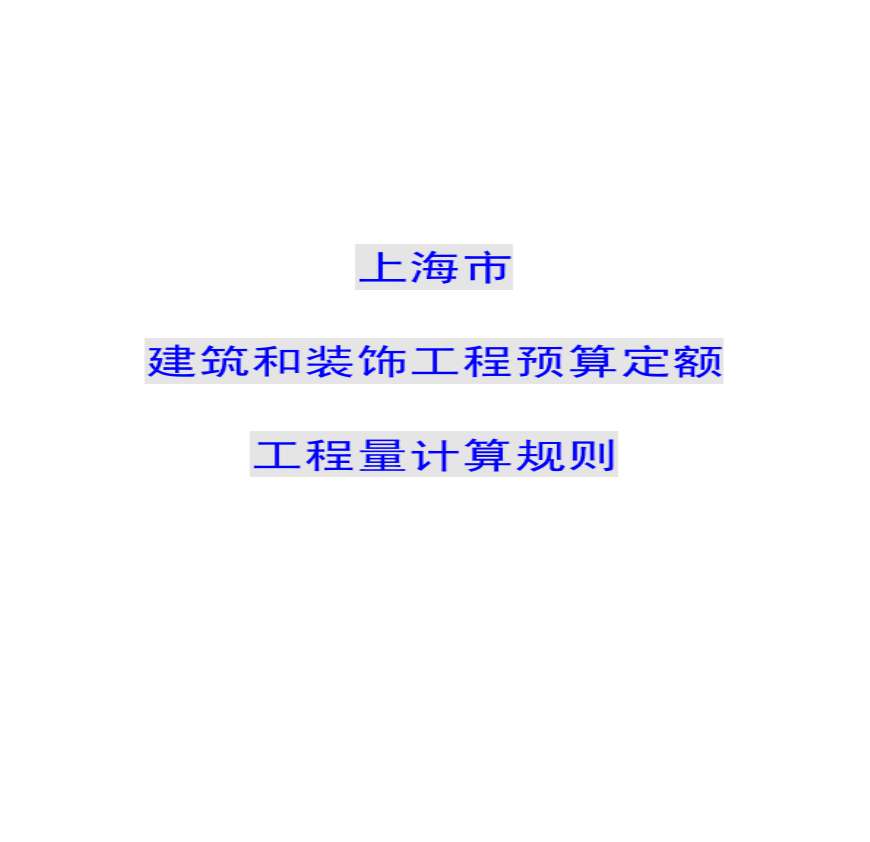 > 上海市建筑和装饰工程预算定额工程量计算规则