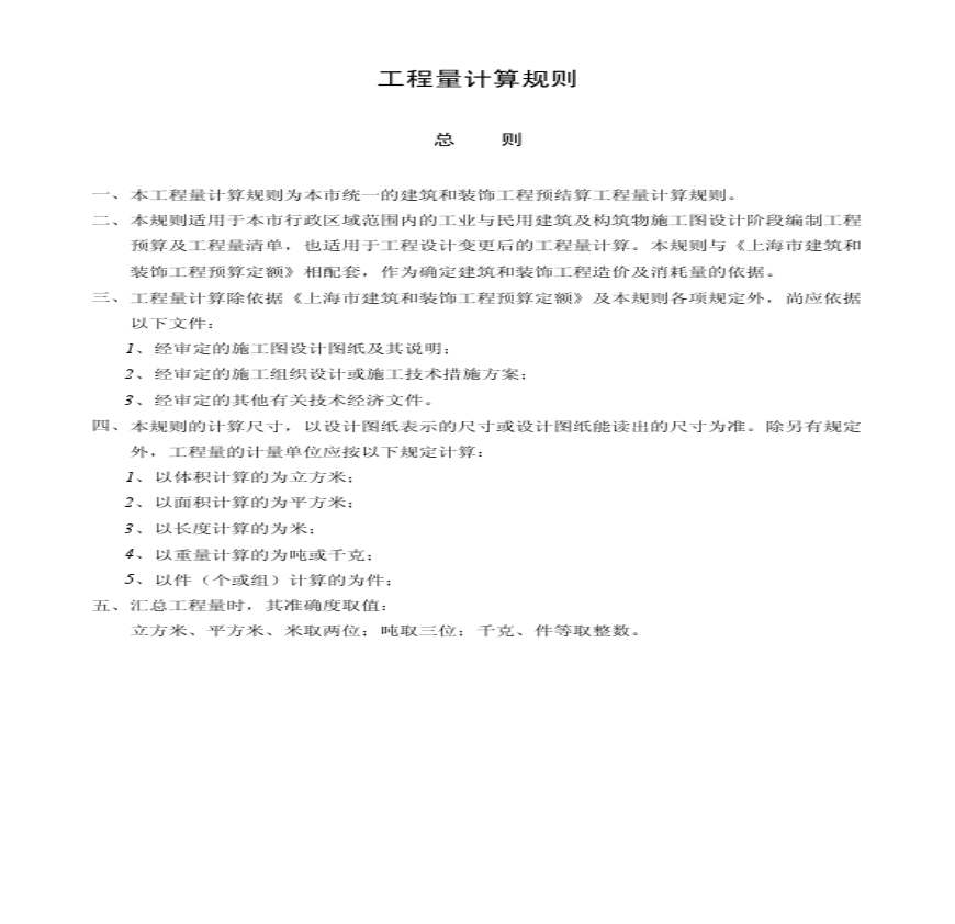 上海市建筑和装饰工程预算定额工程量计算规则.pdf 免费下载