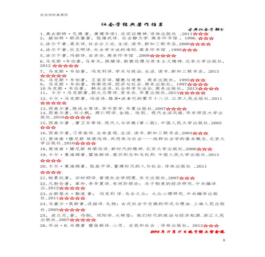 社会学经典著作推荐之古典社会学部分资料下载,喜欢的朋友可以下载收藏!