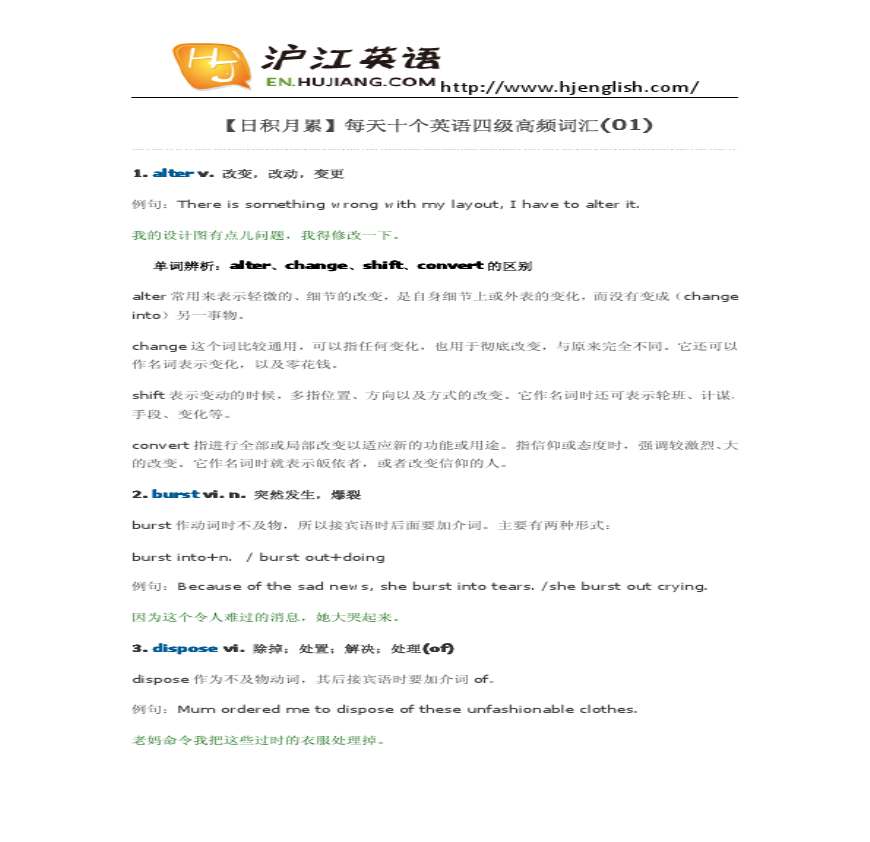 四级高频词汇讲解资料下载,喜欢的朋友可以下载收藏!