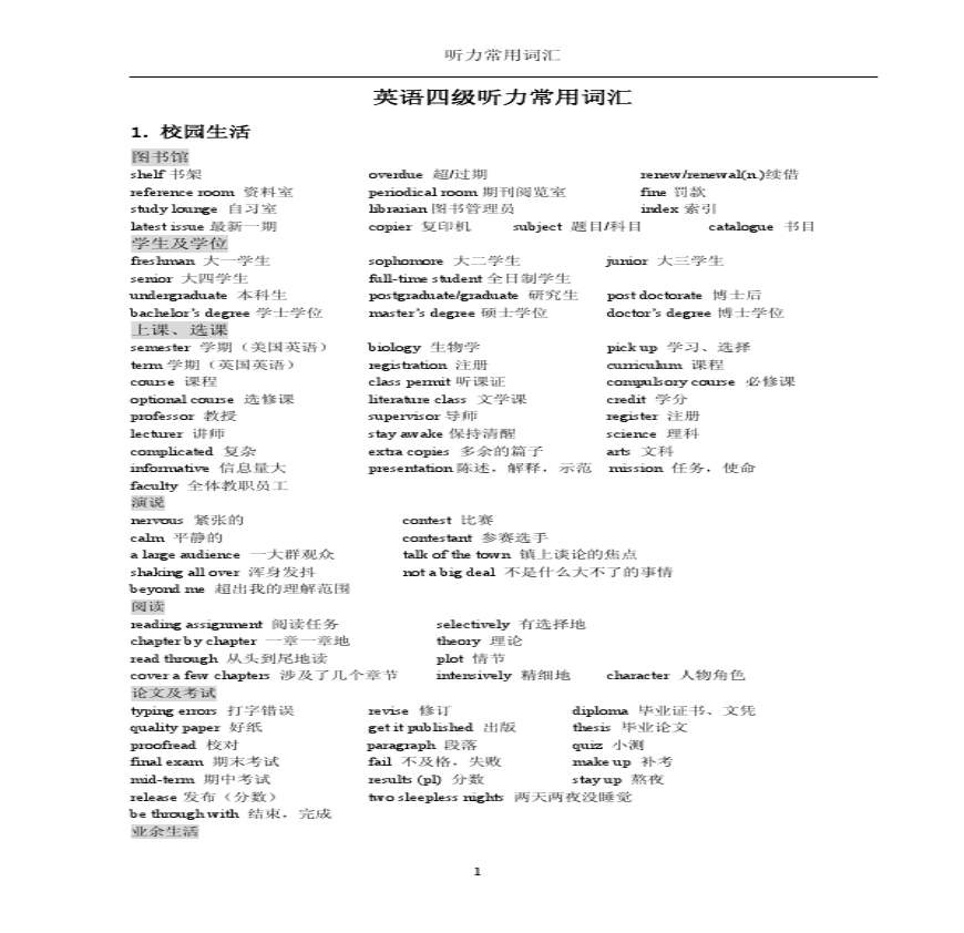 四级听力高频词汇.pdf 免费下载