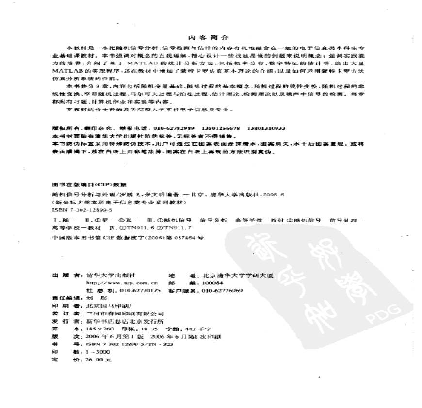 主讲的本科生课程有、《信号与系统》、《信号检测、估计原来与应用专题研讨》、《随机 大小:MB更新时间:年月日简介:等著 上传大小:MB学习资料页 习题解答_习题解答_,,随机信号分析,随机信号分析 ,随机信号处理,随机信号分析基础,随机信号,伪随机信号,数值分析习题解答, 学习资料页 答案,张文明编著)作业一的参考答案P:解:利用所以 ()同理利用 可得到P:解:由题意可得,,,,。