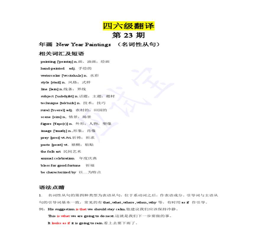四六级翻译(第23期)+(第22期答案)资料下载,喜欢的朋友可以下载收藏!