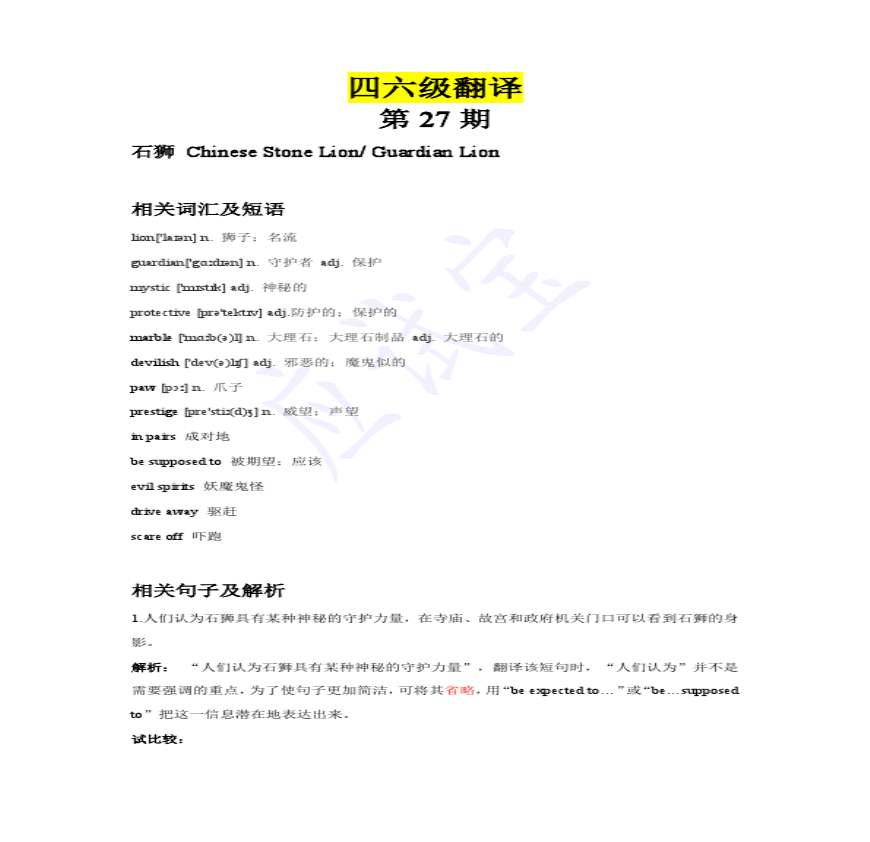 四六级翻译(第27期)资料下载,喜欢的朋友可以下载收藏!