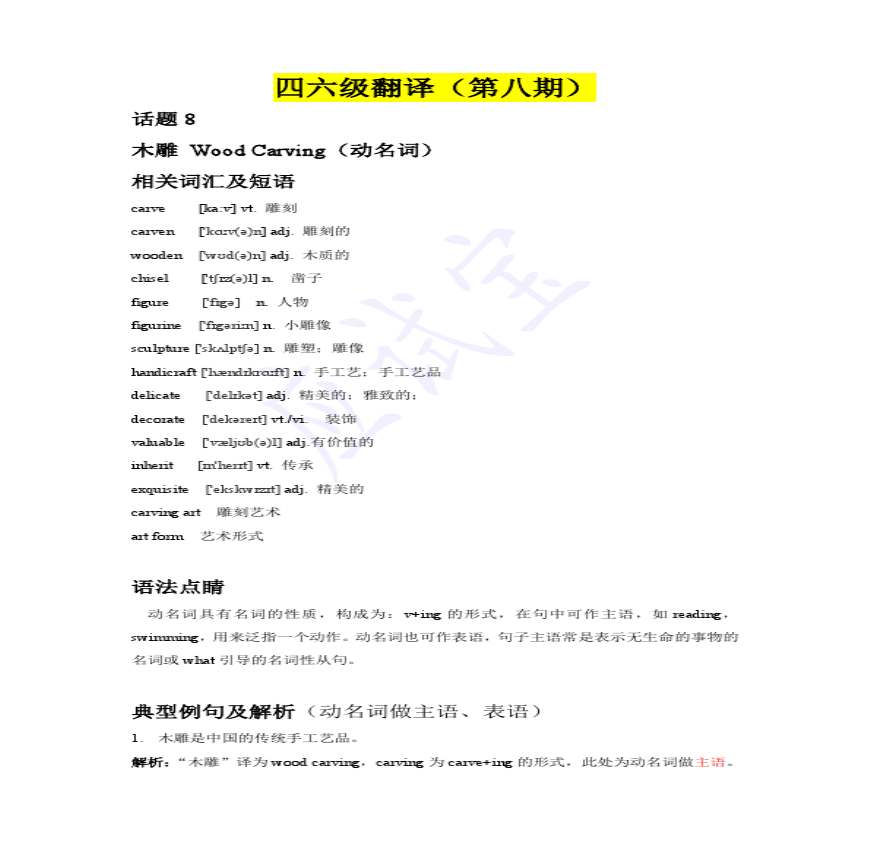 四六级翻译(第八期)+(第七期答案)资料下载,喜欢的朋友可以下载收藏!