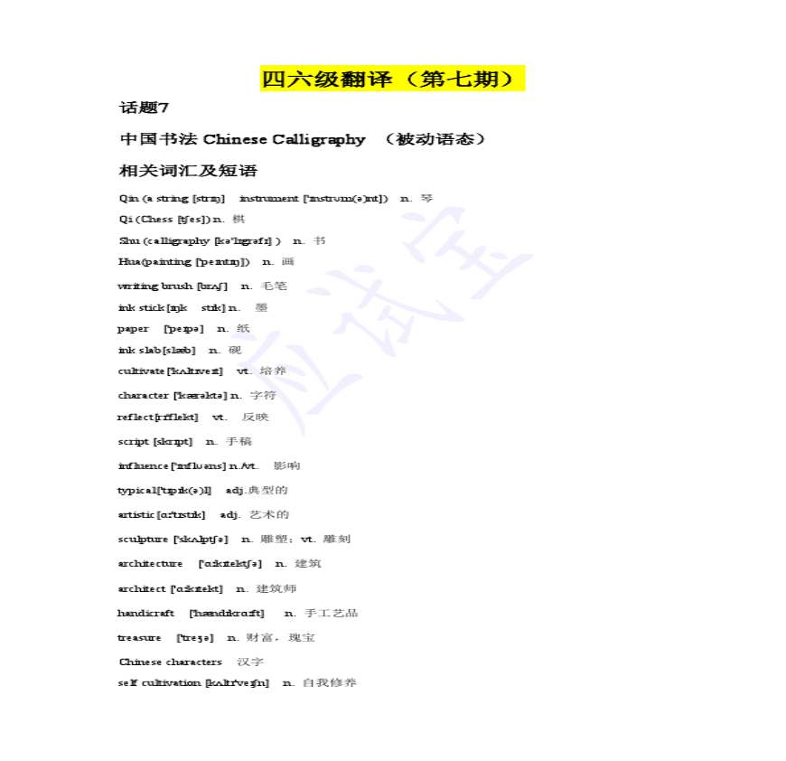 四六级翻译(第七期)资料下载,喜欢的朋友可以下载收藏!
