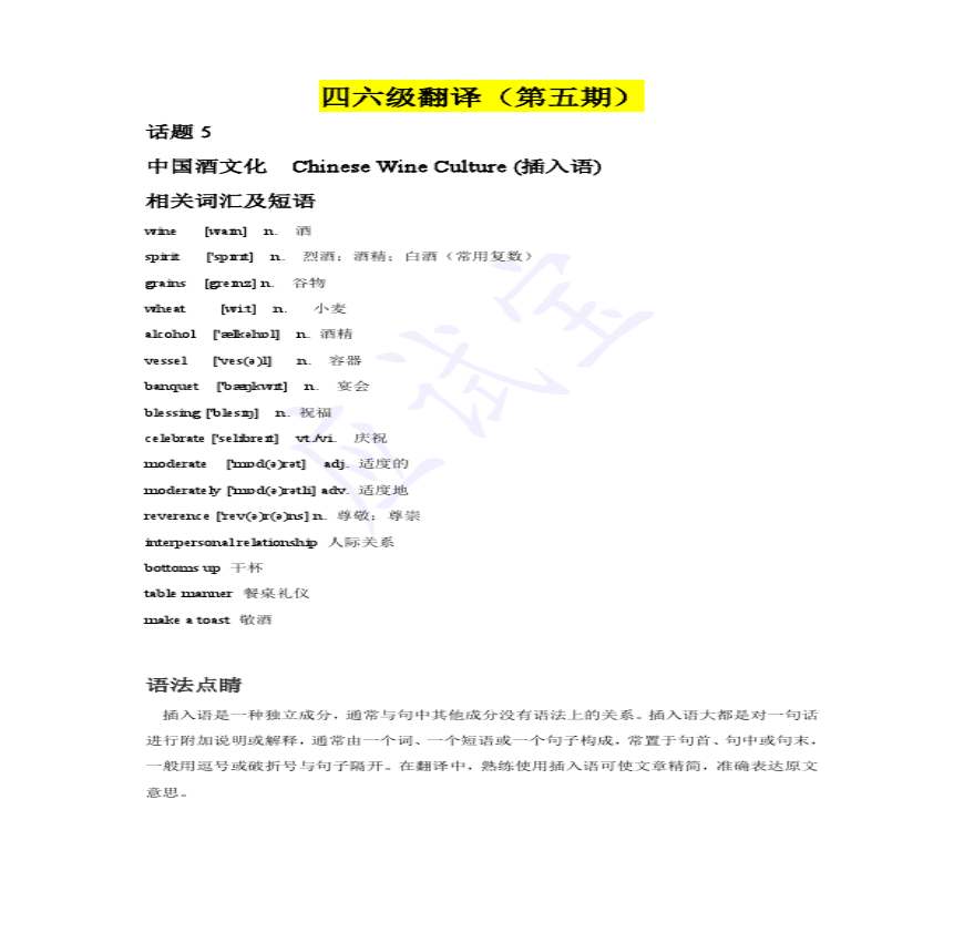 四六级翻译(第五期)资料下载,喜欢的朋友可以下载收藏!