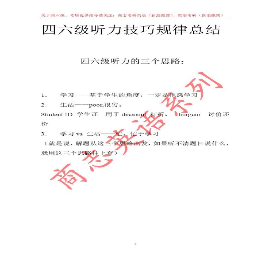【精品】最新英语英语四六级听力的三个思路、学习基于学生的角度,一定是抱怨学习、生活r,很穷。