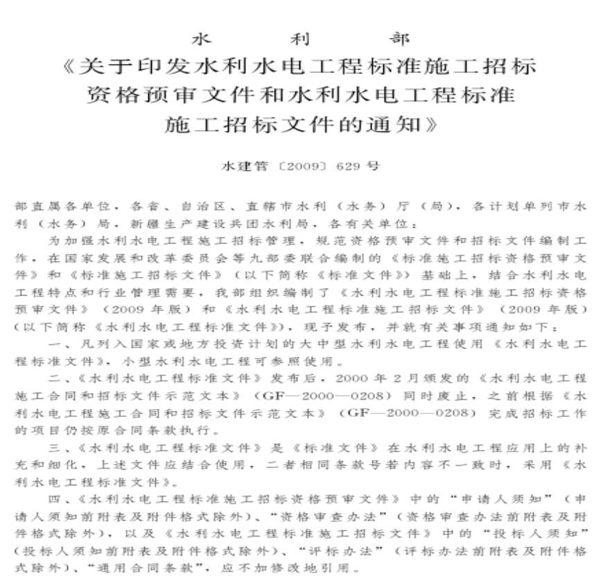 > 《水利水电工程标准施工招标文件技术标准和要求