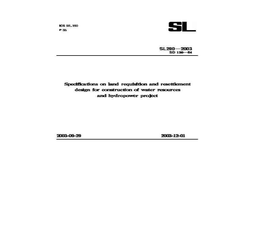 > 水利水电工程建设征地移民设计规范SL290-2003