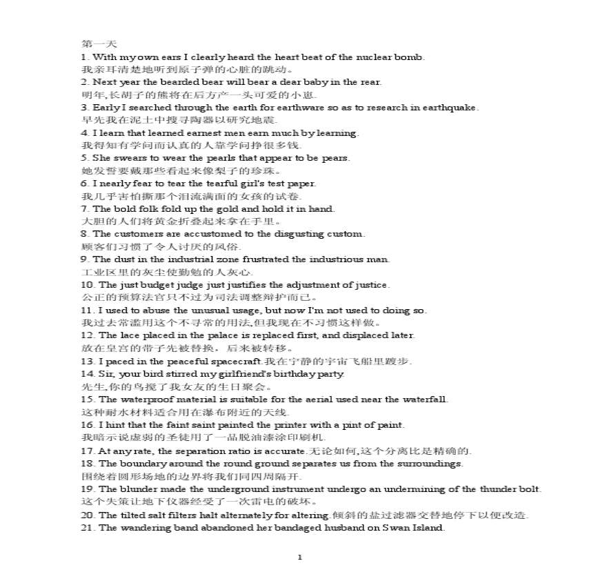 [研究生入学考试]_ 学习资料页 [研究生入学考试] 文档介绍: 第一天 WrIrrrbr我亲耳清楚地听到***的心脏的跳动。