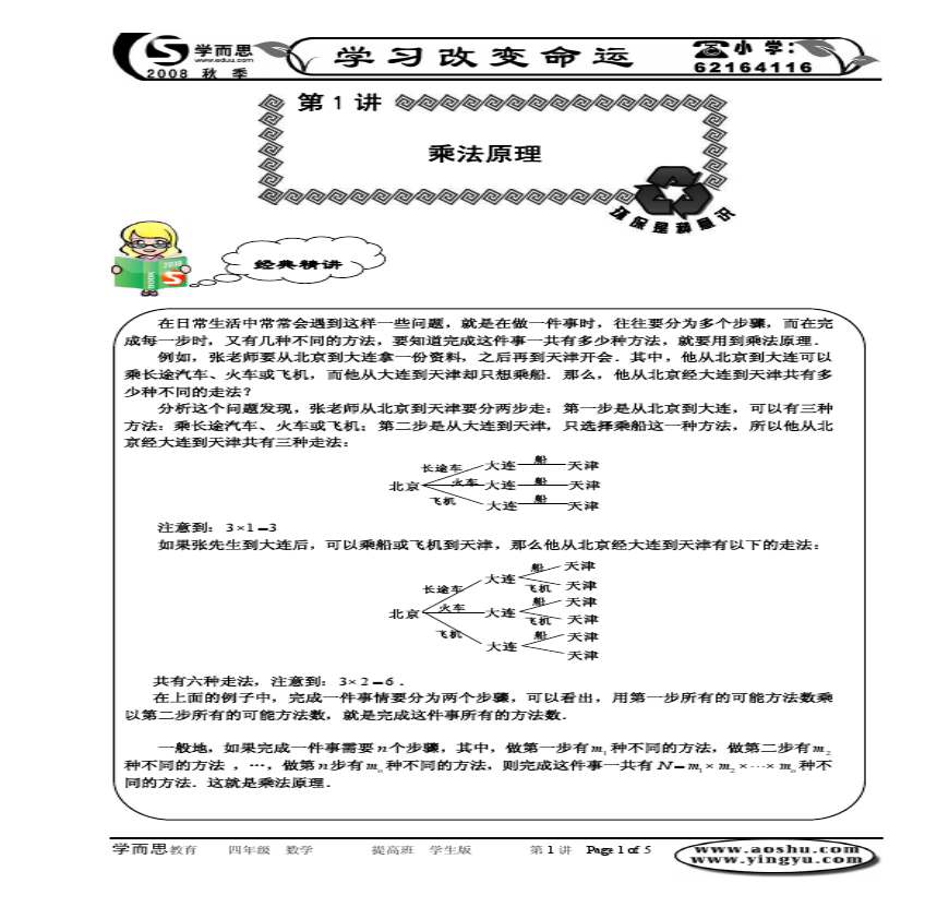 教师版 学而思教育数学教师 P 秋季小学教师版模板本讲的两个教学要点:使掌握乘法原理主要内容,掌握乘法原理运用的方法培养准确分 学习资料页 竞赛 学习资料页 学而思教育数学竞赛班教师P秋季小学教师版模板乘法原理本讲的两个教学要点:使掌握乘法原理主要内容,掌握乘法原理运用的方法培 竞赛教师版 - 。