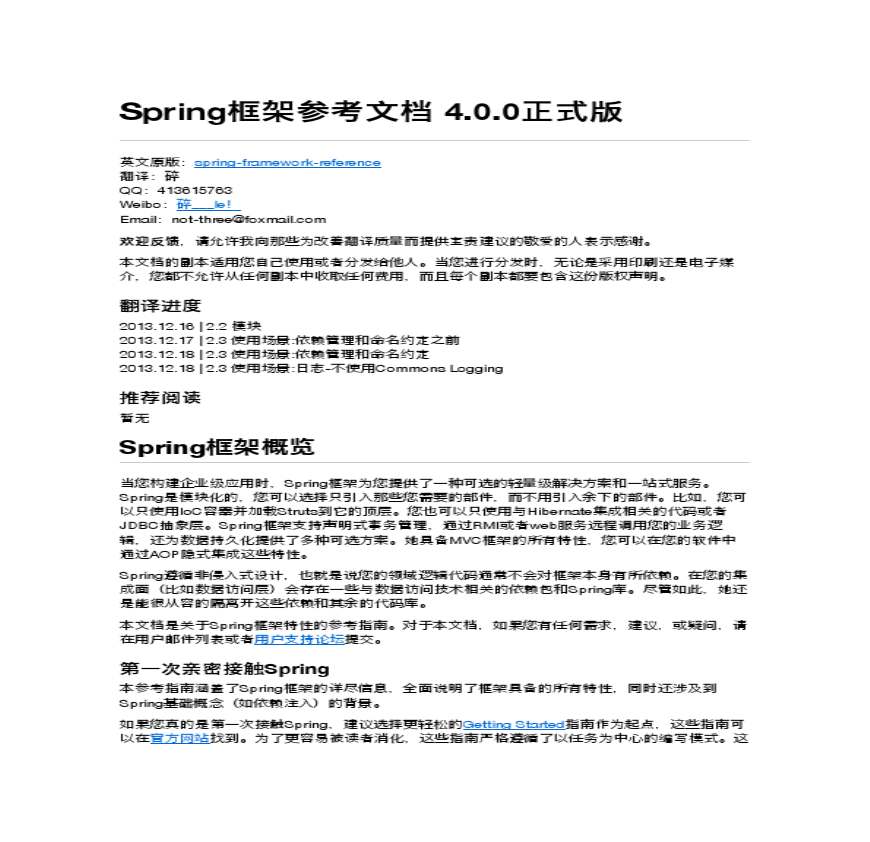 spring框架参考文档-4.0.0-v2.3.2.pdf 免费下载