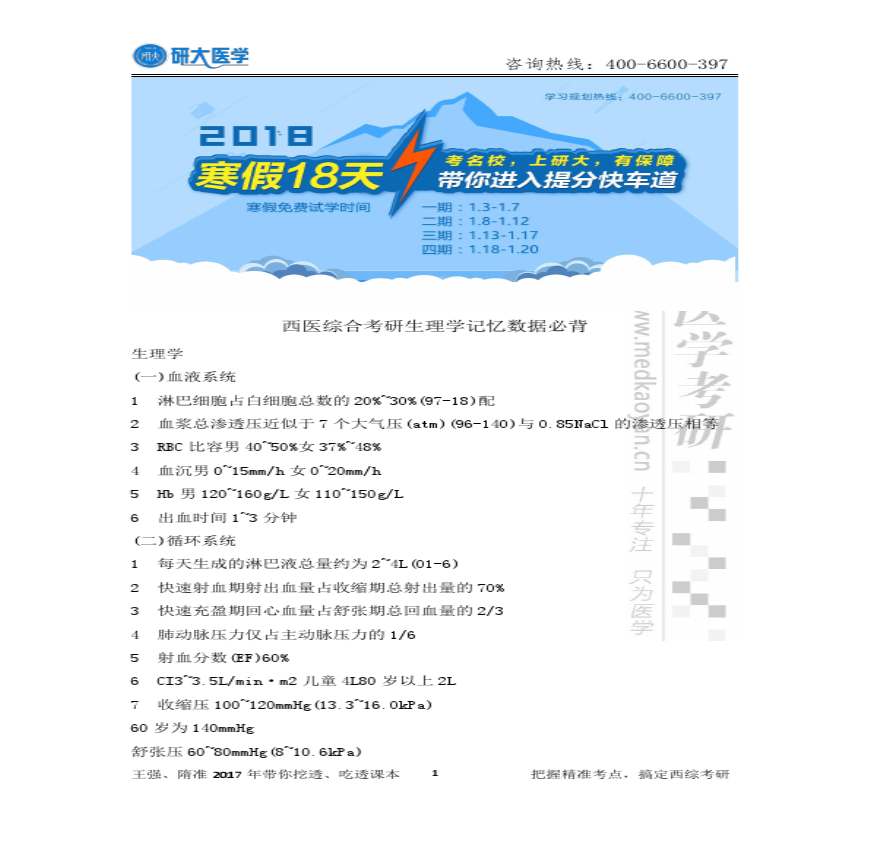 金锄头多多文库金锄头多多文库 资源分类 中学教育 物理资料 下载文档到电脑,查找使用更方便 下载 VIP免 学习资料页 其他人还搜了医学考研官 西医综合考研大纲 西医综合考研大纲 研究生管理类联考必备书 考研复习资料 想普及一下考研十三个门类 联考西医综合科目 临床医学综合能力西医参考书目 西医综合考研真题 西医综合考试大纲 西医综合历年真题 西医综合生理学真题 西医综合考什么 西医综合考研各科占比 西医综合考研辅导 西医综合考研科目 考研西医综合真题 西医综合考试大纲 年西医综合考研大纲 中医综合考研大纲 西医综合考研大纲 复习文档全文阅读、 学习资料页 才思教育考博全心全意 复习生理学 (一)血液系统 淋巴细胞占白细胞总数的%~%(xb 北京医学部 帮币 北京医学部 学习资料页 才思教育考博全心全意北京医学部生理学 (一)血液系统 淋巴细胞占白细胞总数的%~%(xb 年北京医学部 帮币 年北京协和医学院 学习资料页 才思教育考博全心全意 年北京协和医学院生理学 (一)血液系统 淋巴细胞占白细胞总数的%~%(xb