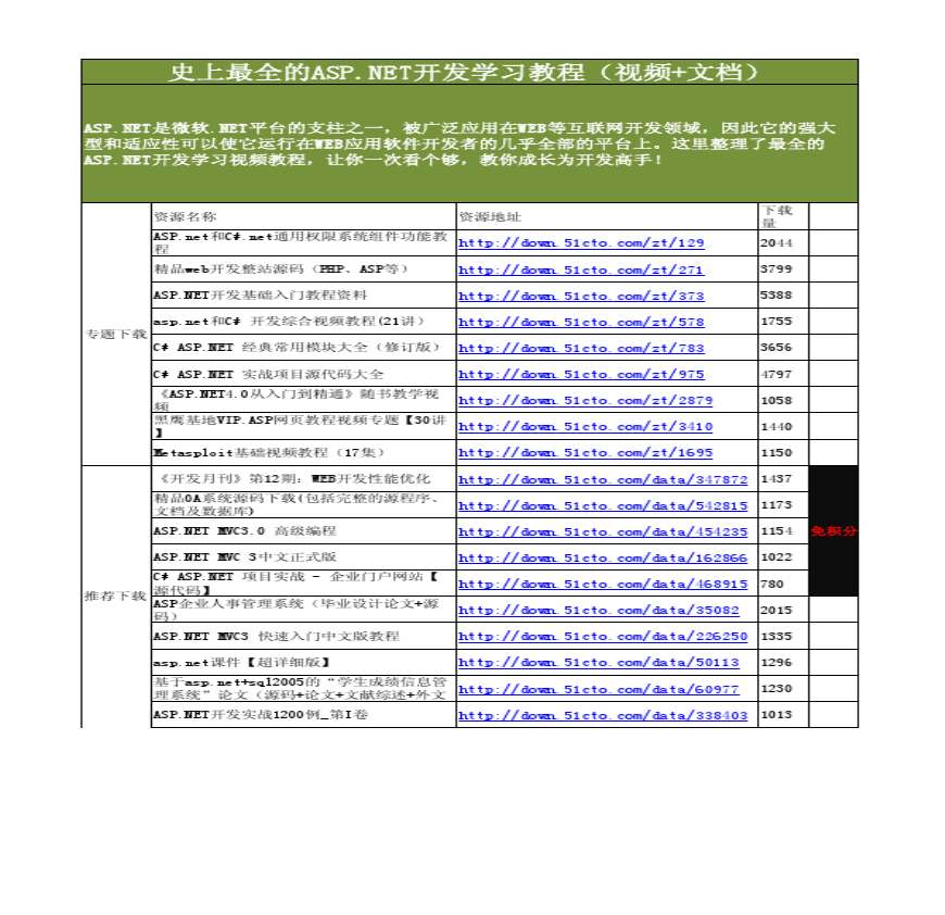 史上最全的ASP.NET开发学习教程(视频+文档)资料下载,喜欢的朋友可以下载收藏!