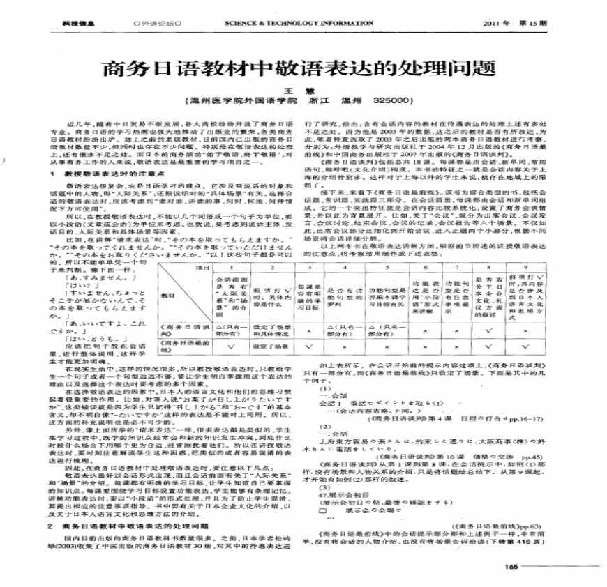 PDF 上传日期: ::| 关注我们 官方公 扫扫二维码,随身浏览文档 手机或平板扫扫即可继续访问 推荐书房APP扫扫更高清 将文档分享至: 分享完整地址 文档地址: 复 学习资料页 商务日语中敬语的使用方法商务日语论文摘要:在商务场合下自古日本就有一句「敬语上手は商売上手」的说法可见在商务文化中敬语的使用是等重要。