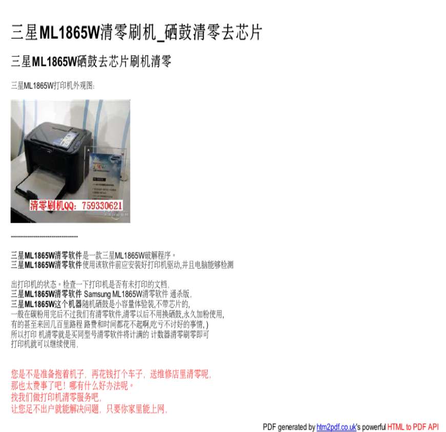 > 三星ML1865W清零刷机_三星ML1865W硒鼓解码去芯片刷机清零使用说