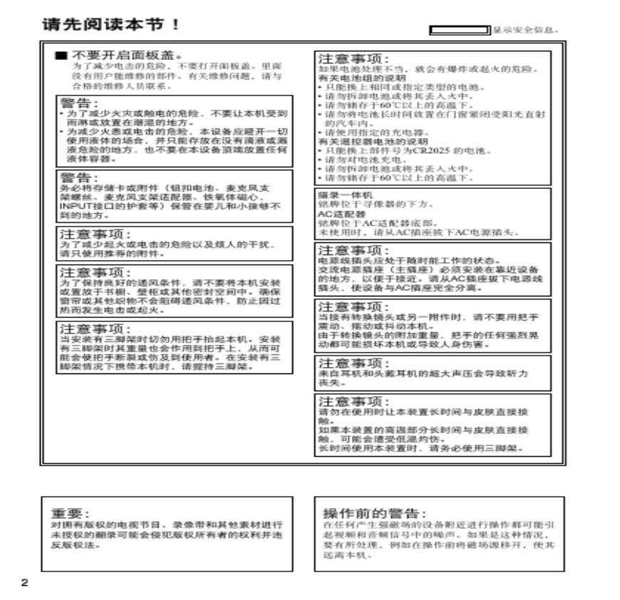 > 松下高清摄像机AG-HPX173MC使用说明书