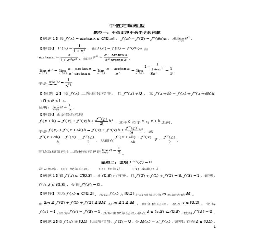考研_r文档文档下载与下载 年考研 年考研所有资料文档均为本人悉心收集,全部是文档中的精品,绝对值得下载收藏! 年考研 考 考研下载_文档下载 文档下载,数万用户每天上传大量最新资料,数量累计超一个亿,中值定理题型题型一:中值定理中关于θ 学习资料页 中值定理 一:中值定理中关于θ的问题